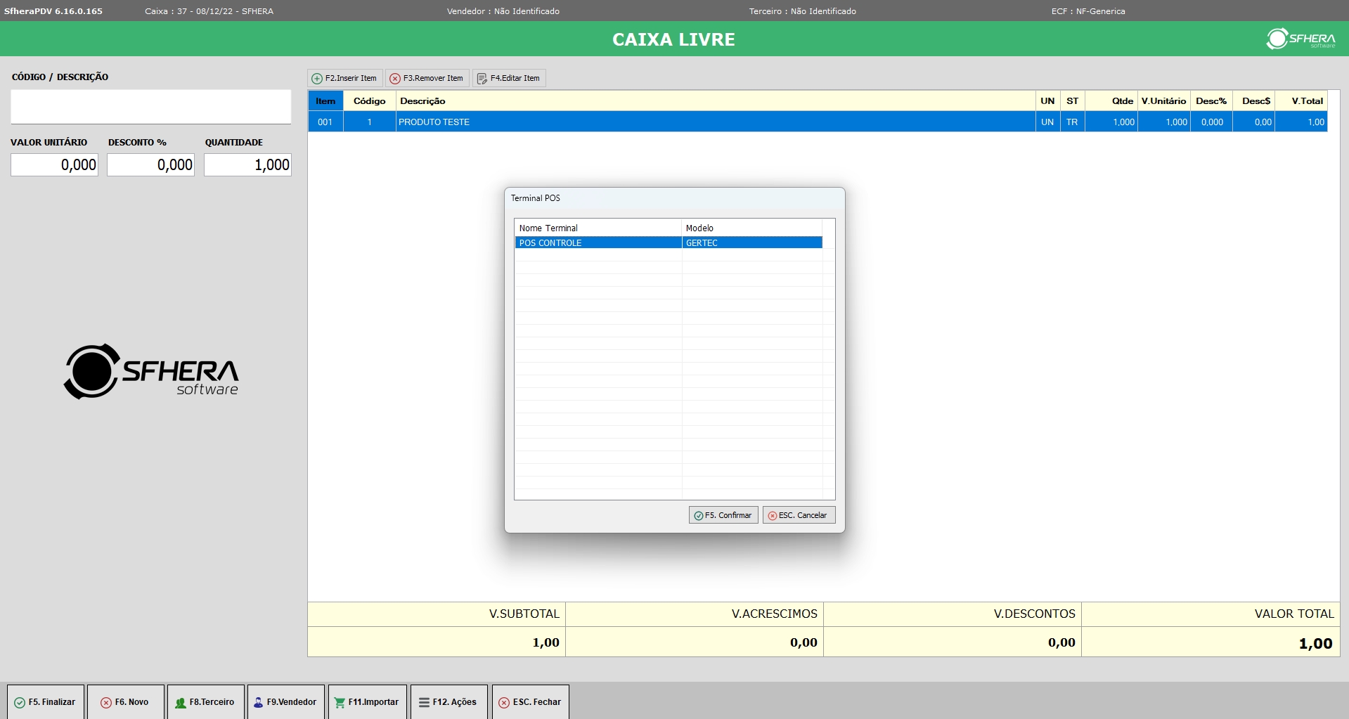 1.3. Ao finalizar a Venda no PDV, utilizando o Tipo de Pagamento para POS, o sistema irá acionar a tela para seleção do terminal POS desejado para envio da Cobrança: