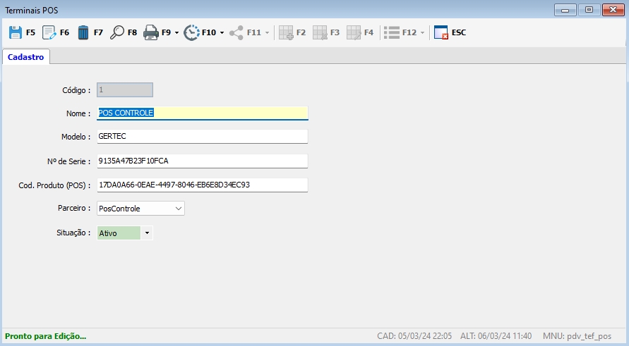 1.2. No PDV, crie os Terminais POS que deseja enviar pagamentos: